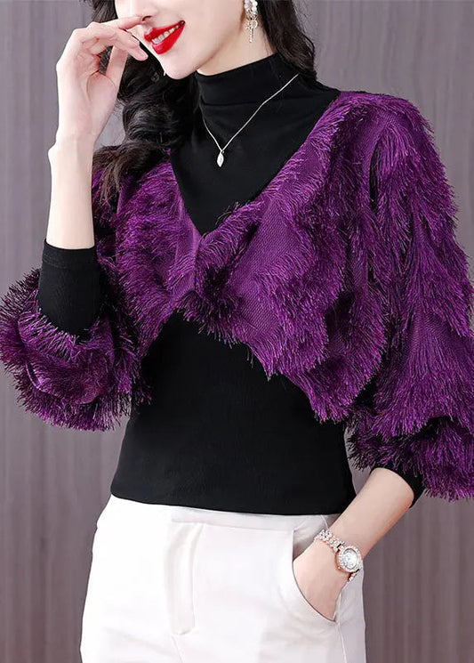 Black Turtleneck Fuzzy Fur Fluffy Tops