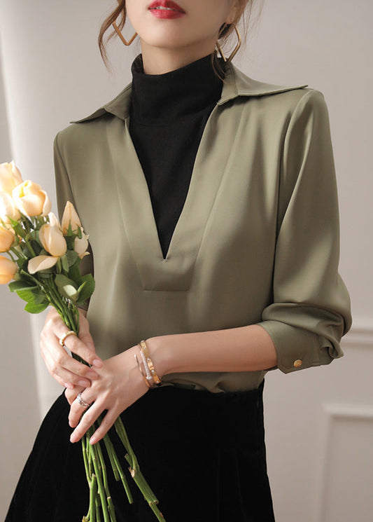 New Khaki Button Patchwork False Two Pieces Knit Tops Long Sleeve TU010