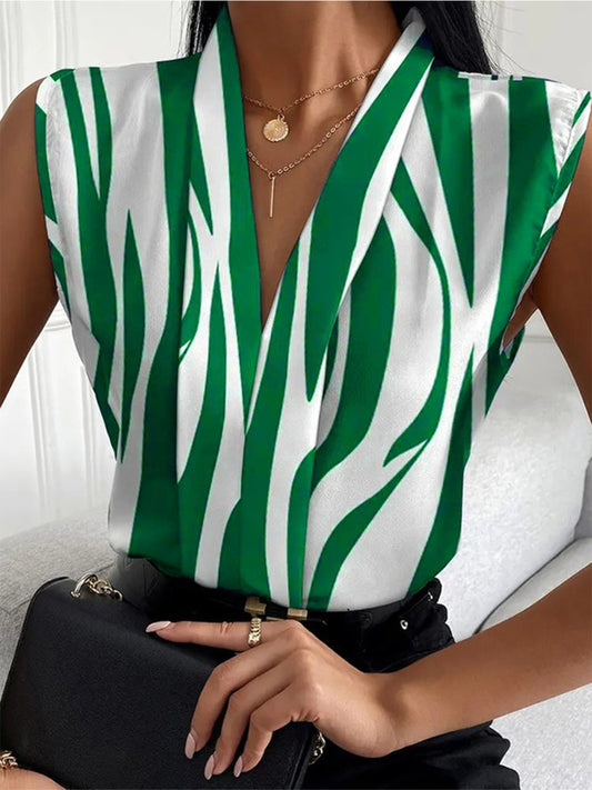 Casual Shirt Collar Feather Pattern Blouse WZ83