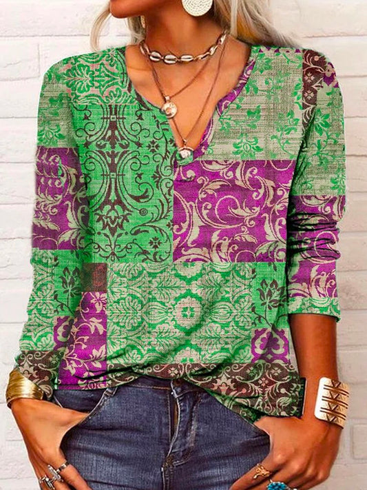 Ethnic Long Sleeve Crew Neck Casual T-Shirt WI102
