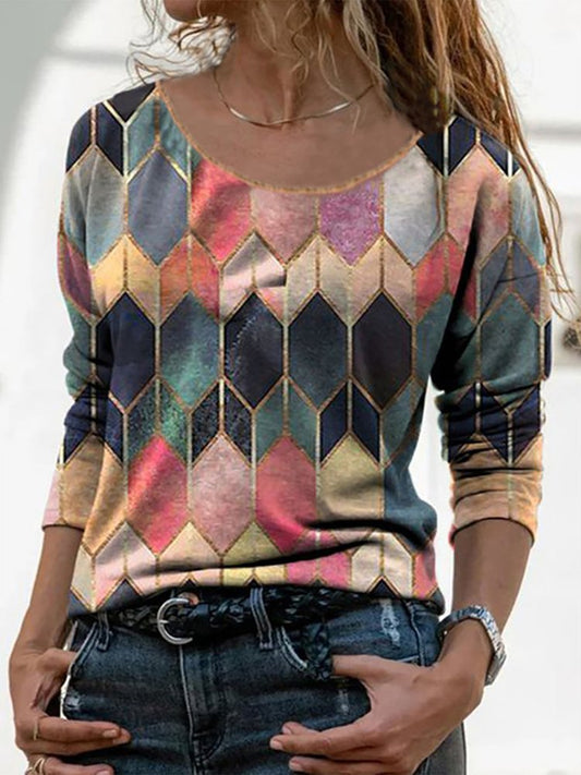 Casual Geometric Printed Round Neck Loosen Short Sleeve T-shirt QH109