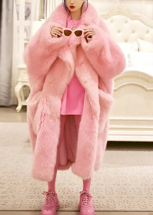 Pockets Mink Hair Leather And Fur Long Coats Winter