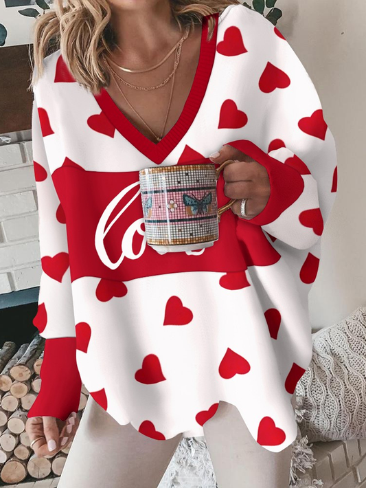 Heart/Cordate Loose Casual V Neck Sweatshirt QAS48