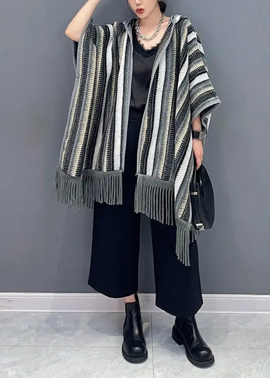 Hooded Tasseled Knit Cardigan Fall