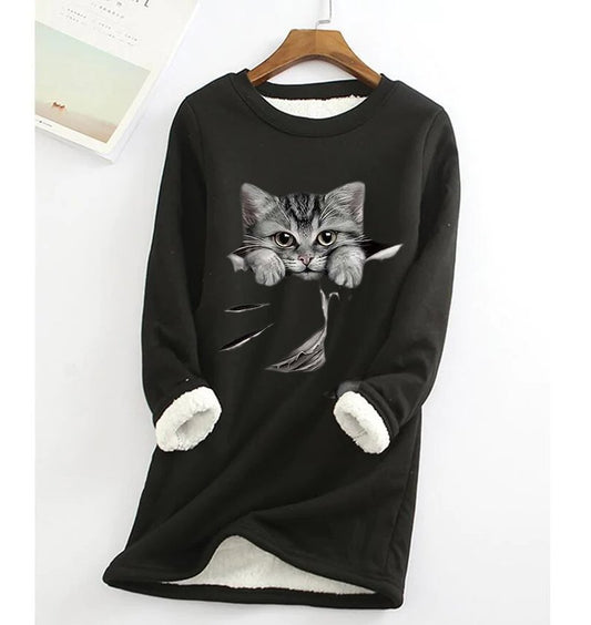 Grey Fun Cat Fleece Warm Sweatshirt GA58