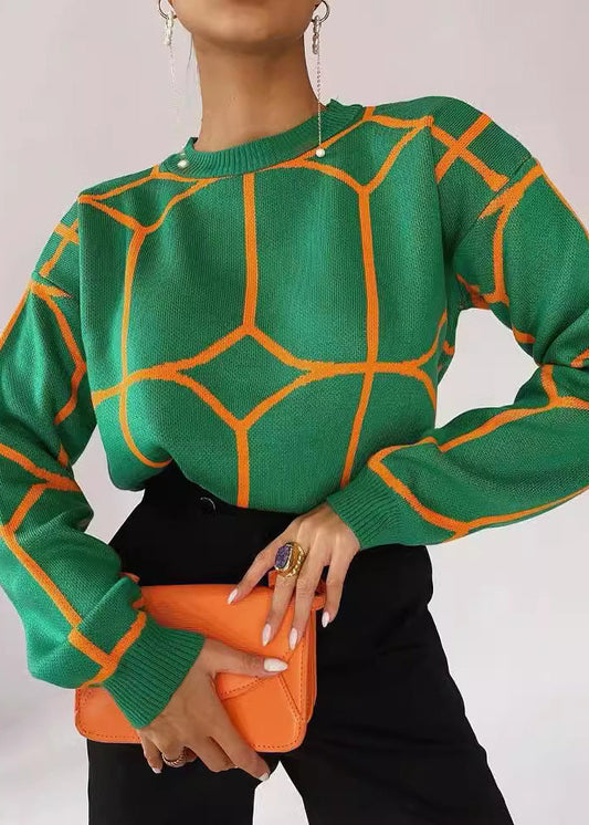 Fashion Green Striped Knit Short Cardigan Fall QY013