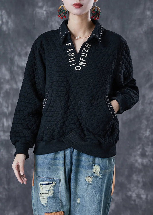 Fine Black Peter Pan Collar Zircon Zippered UPF 50+ Coat Long Sleeve VB1051
