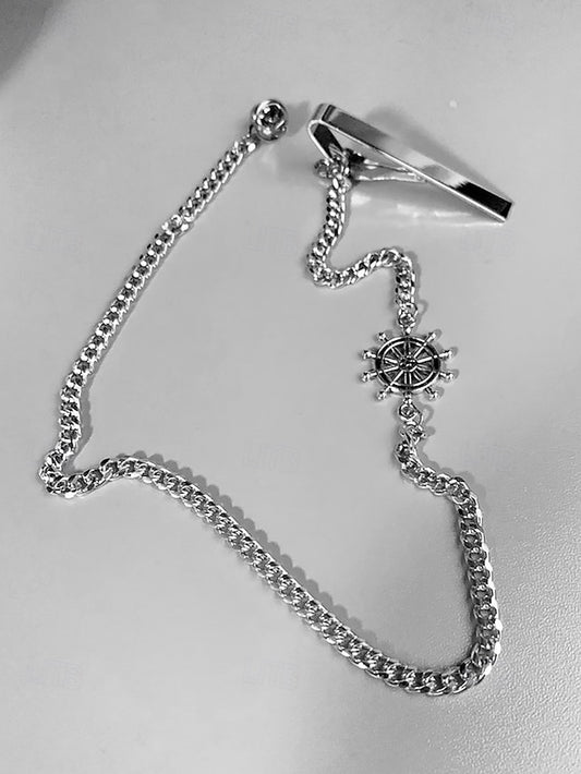 Nautical Ship Design with Silver – Wheel Men's Chain Tie