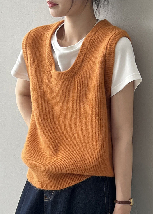 2024 einfache Vielseitige Grün U Neck Strick Weste Herbst WD016