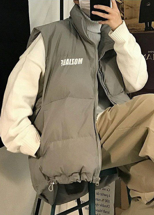 Stilvolle, graue, übergroße Witner-Weste für Herren mit Kordelzug und feiner Baumwollfüllung TK021