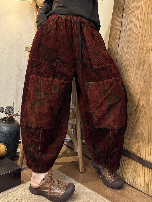 Damen Herbst Vintage Blumen gespleißte Cord Haremshose AH1003