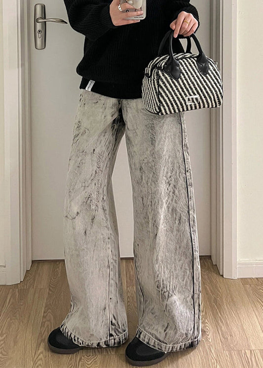 Lässige Retro-Patchwork-Jeanshose für Herren mit hoher Taille, Grau SA004