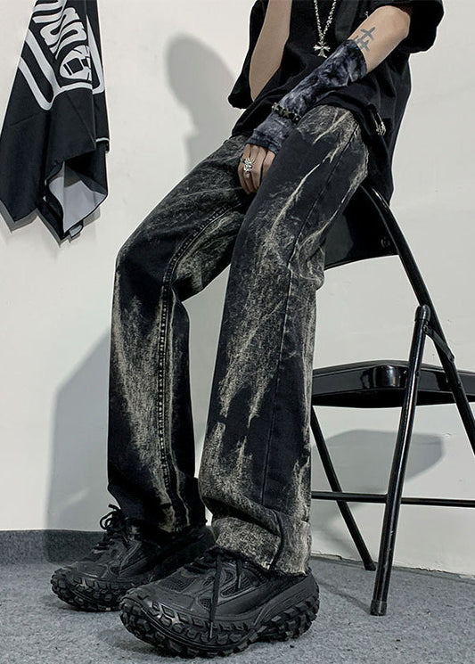 Retro Schwarze High Waist Herren Denim Weite Beinhose SA064