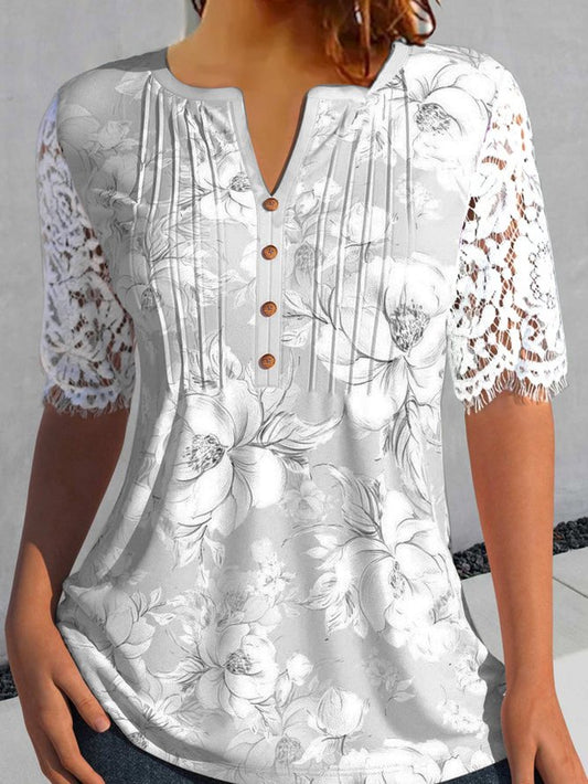 Lässiges Spitzenhemd mit V-Ausschnitt, schlichtes Hemd QH87