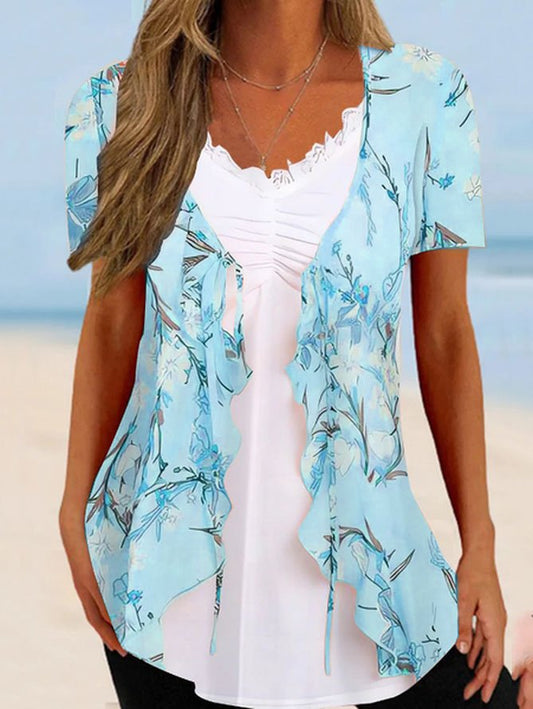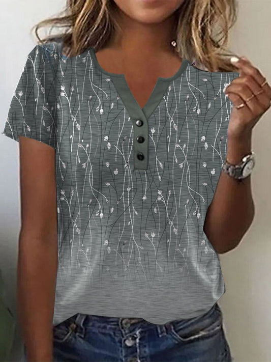 Freizeithemd mit V-Ausschnitt und Blumenmuster, WG74
