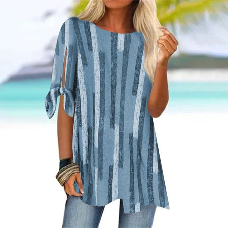 Lockeres Freizeithemd mit Rundhalsausschnitt und geometrischem Muster mm272