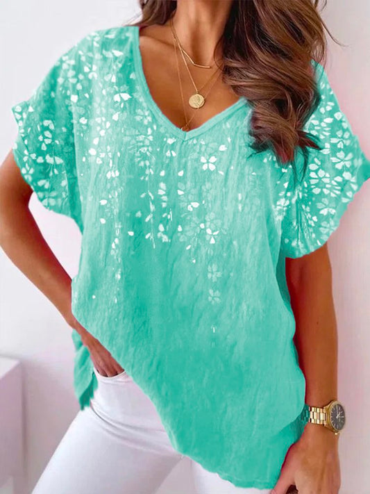 Lässiges Leinenhemd mit V-Ausschnitt und Blumenmuster mm243