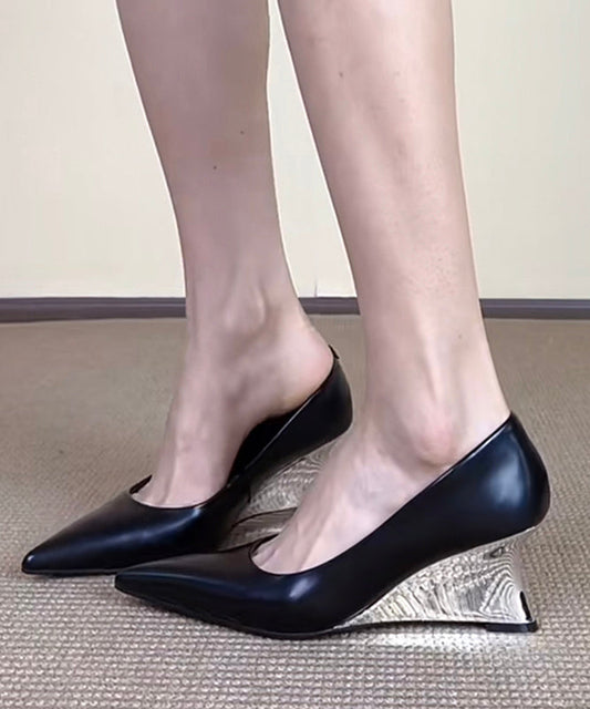 Französische Keilabsätze aus silbernem Kunstleder mit spitzer Spitze OI013