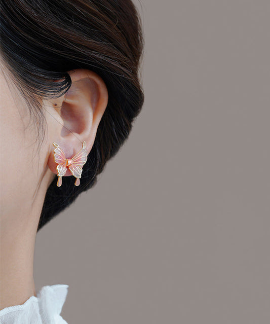 Schicke lila Sterling Silber Overgild Tropf Glasur Schmetterling Ohrstecker EY005