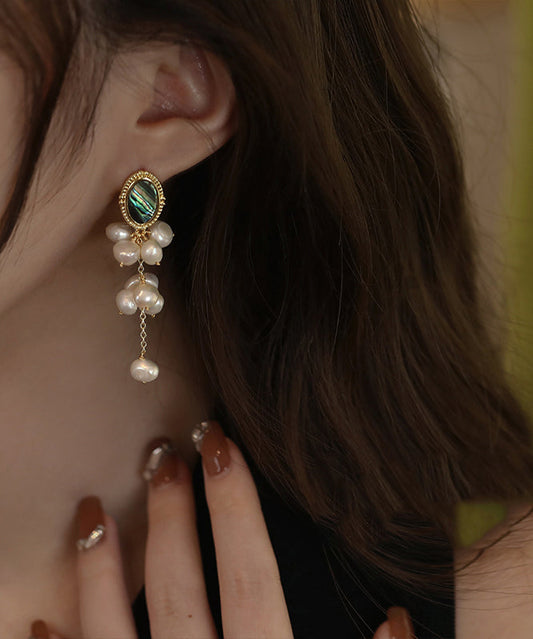 Original Design Gold Sterling Silber Legierung Perle Quaste Drop OhrringeFeine Seide Sterling Silber Gebrochen Silber Gypsophila Halskette ET009