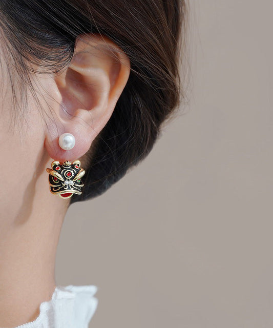 Original Design Gold Sterling Silber Overgild Perle Löwenkopf Ohrstecker RA024
