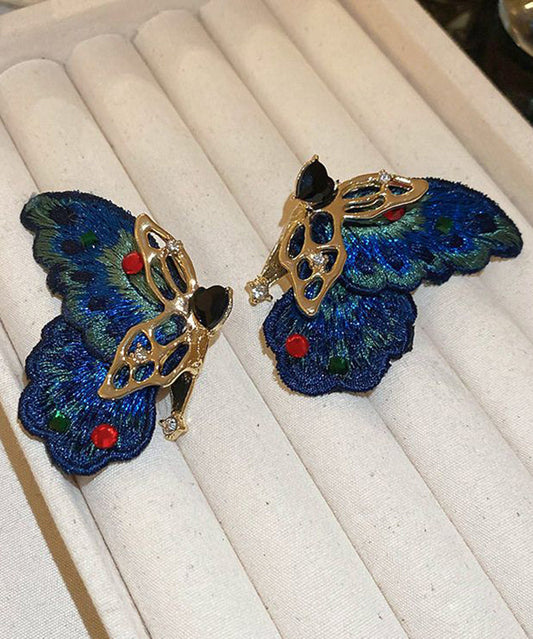 Retro Blau Legierung Zirkon Gewebt Asymmetrische Schmetterling Creolen RA041