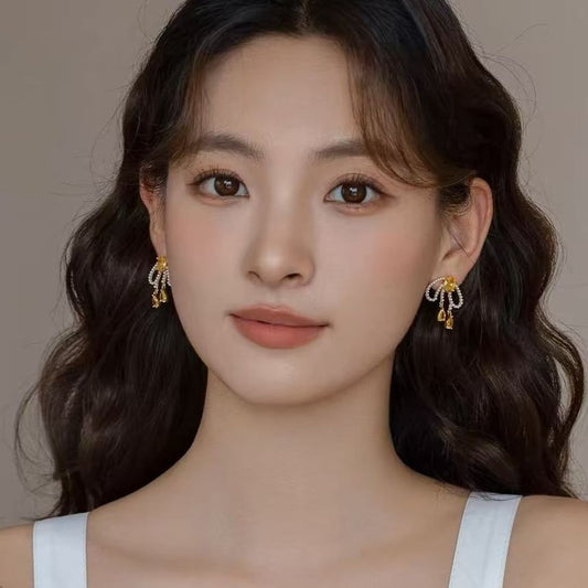 Faux Bowknot Pearl Earring Rhinestone Dangle