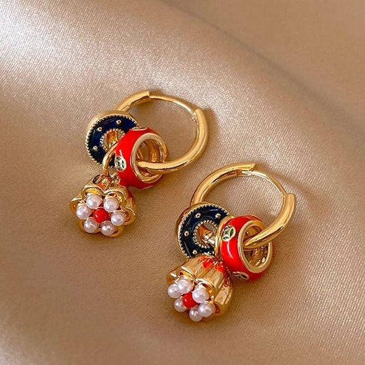 Floral Earring Faux Pearl Dangle Alloy