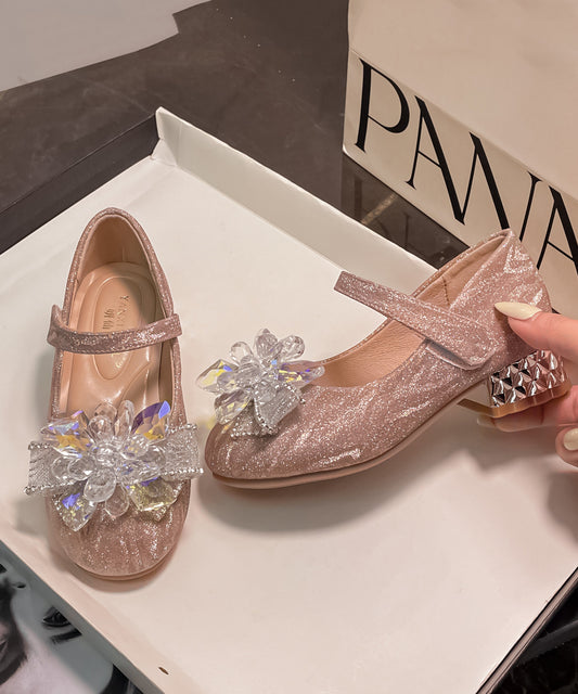 Kinder Perle Schuhe Schnalle Zirkon Apricot Flache Nagel Füße