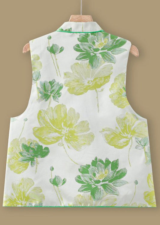 Jacquard Grün Stehkragen Knopf Seidenweste Ärmellos QO014