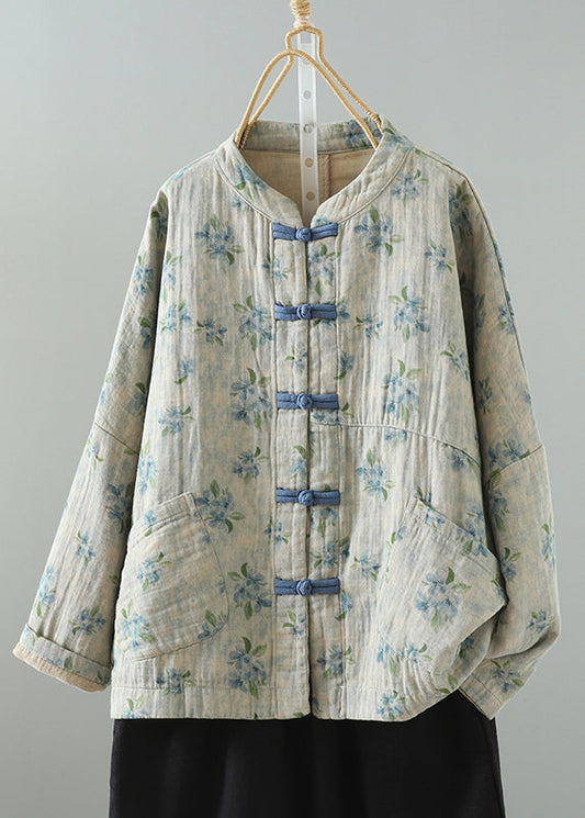 Jacquard Hellblau Stehkragen Knopf Baumwollmäntel Herbst QO005
