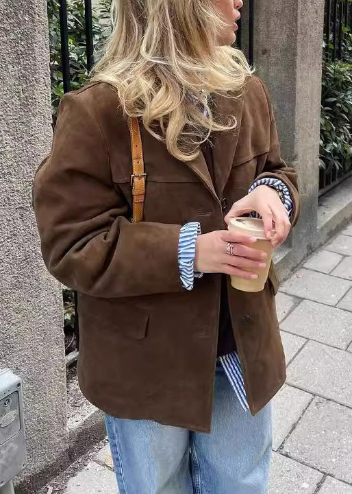 Boutique Braun Peter Pan Kragen Knopf Kunst Wildleder Mantel Herbst QY039