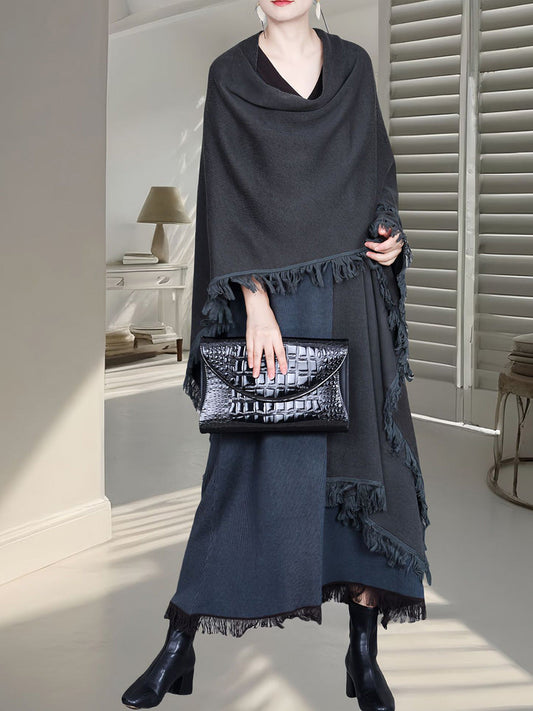 Damenmode Colorblock Quaste Wolle Strick Strickjacke Schal AH1074