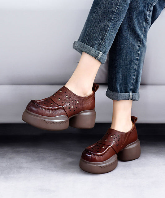 Original Design Braun Rindsleder Aushöhlen Blockabsatz Sandalen JJ081