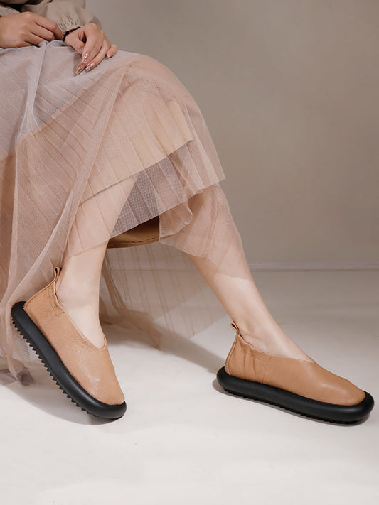 Frauen Sommer Vintage Solide Echtes Leder Flache Schuhe QW1042
