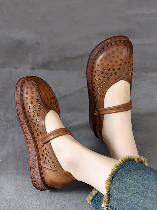 Damen Sommer Leder Solid Cutout Leder Flache Schuhe OO1018