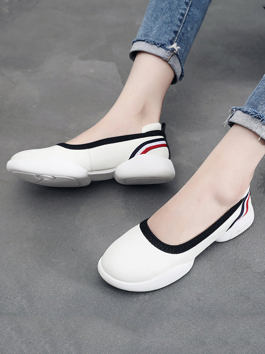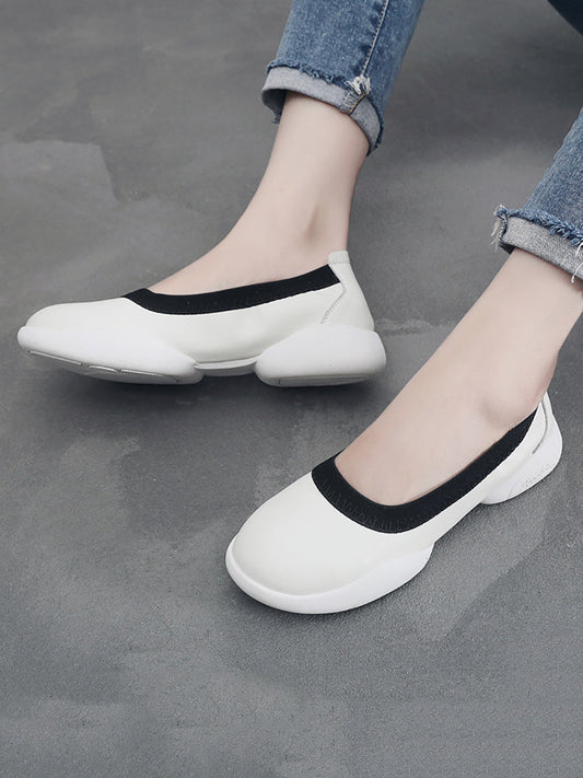 Damen Sommer Casual Leder Weich Gespleißt Flache Schuhe UI1018