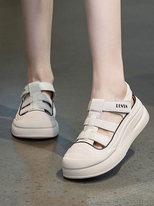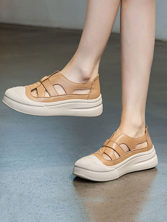 Damen Casual Sommer Leder Gespleißt Cutout Schuhe UI1020