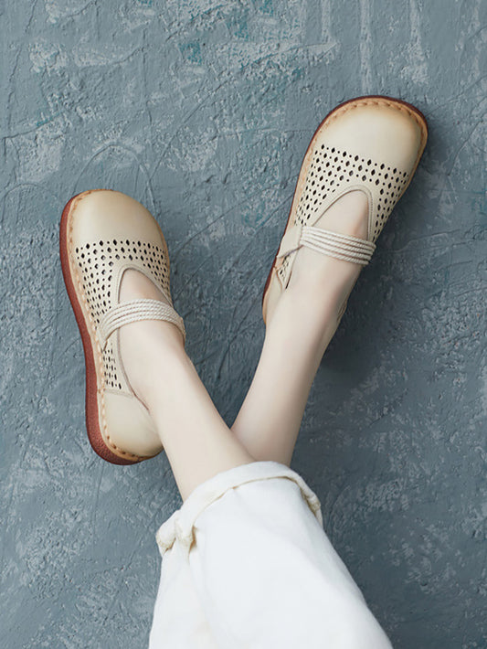 Frauen Sommer Solide Leder Ausschnitt Flache Weiche Schuhe UI1027