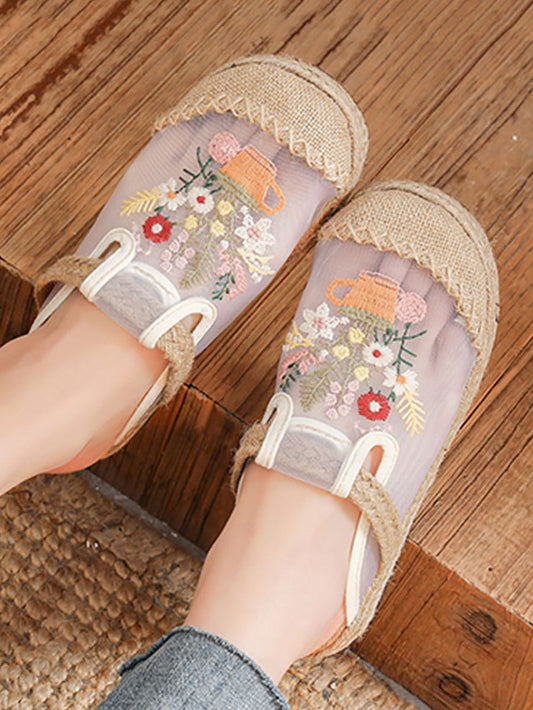 Frauen Sommer Blume Stickerei Leinen Gespleißt Schuhe TY1030