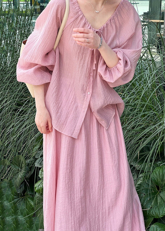 Lose Röcke Baumwolle Solide Frühling Rosa Wrinkled