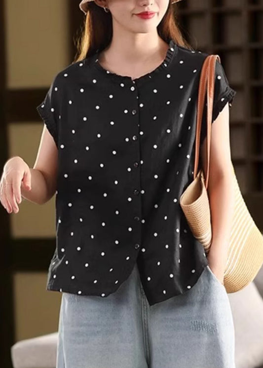 Hemd Kaffee Rüschen Punkte Vintage Sommer Leinen