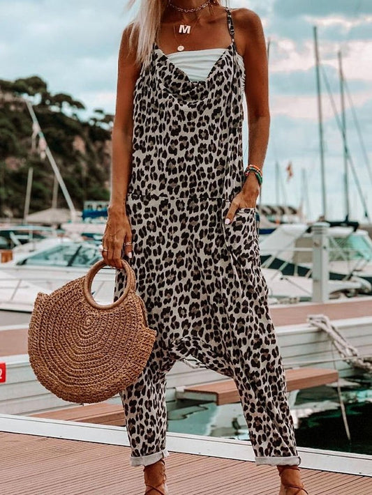 Ärmelloser Jumpsuit und Strampler aus Baumwollmischung mit Leopardenmuster CM95