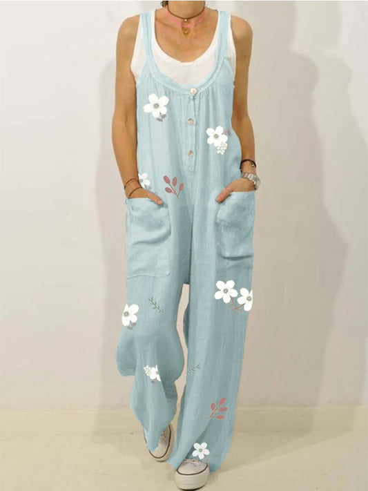 Lässiger Jumpsuit und Strampler mit Blumendruck und Taschen QAJ52