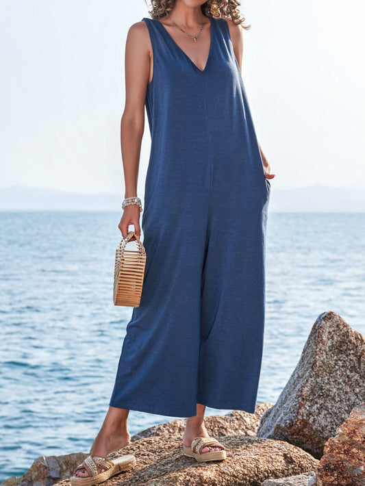 Lässiger ärmelloser Overall in Übergröße mit Taschen CM89