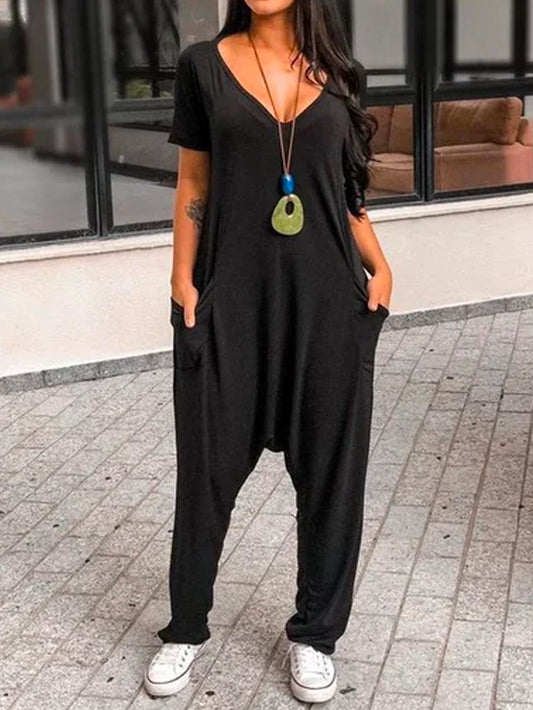 Einfarbiger, kurzärmliger, lässiger Overall mit weitem Bein, Hose CM91