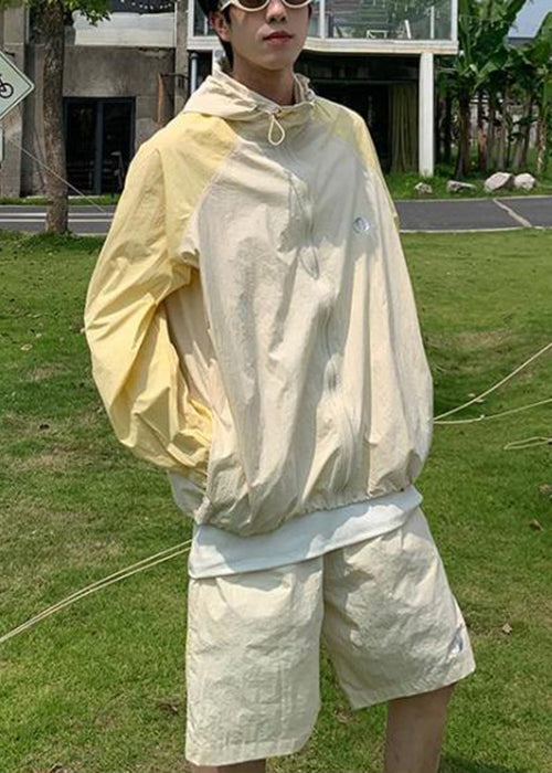 Lässiger beigefarbener Mantel mit Eisstreifen 50+ Patchwork-Seide mit Kapuze UPF Herren