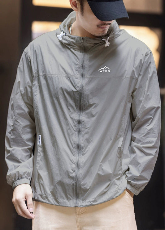 UPF 50+ Simple Coat Grau Kapuzentaschen Sommer Kordelzug Herren