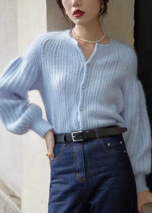 Elegante Blaue Taste Aushöhlen Ma Hai Mao Pullover Laterne Hülse TU039