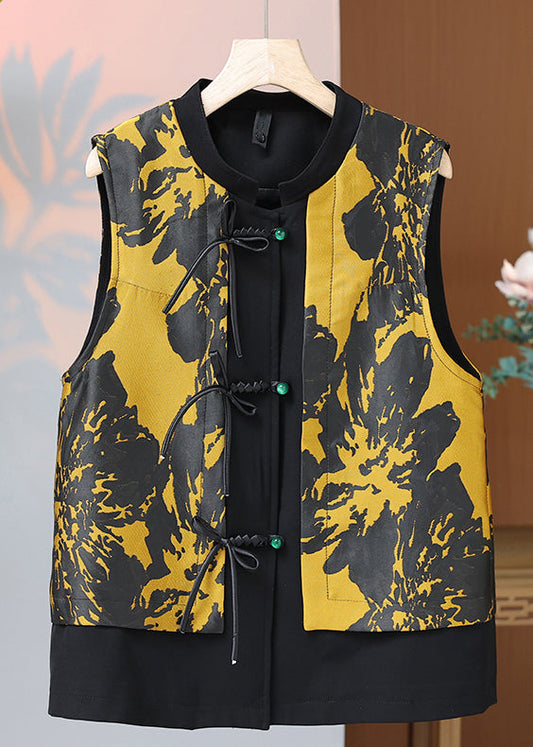 Schwarze Weste aus Seidenvelours mit bestickten Knöpfen im chinesischen Stil, ärmellos, QO064